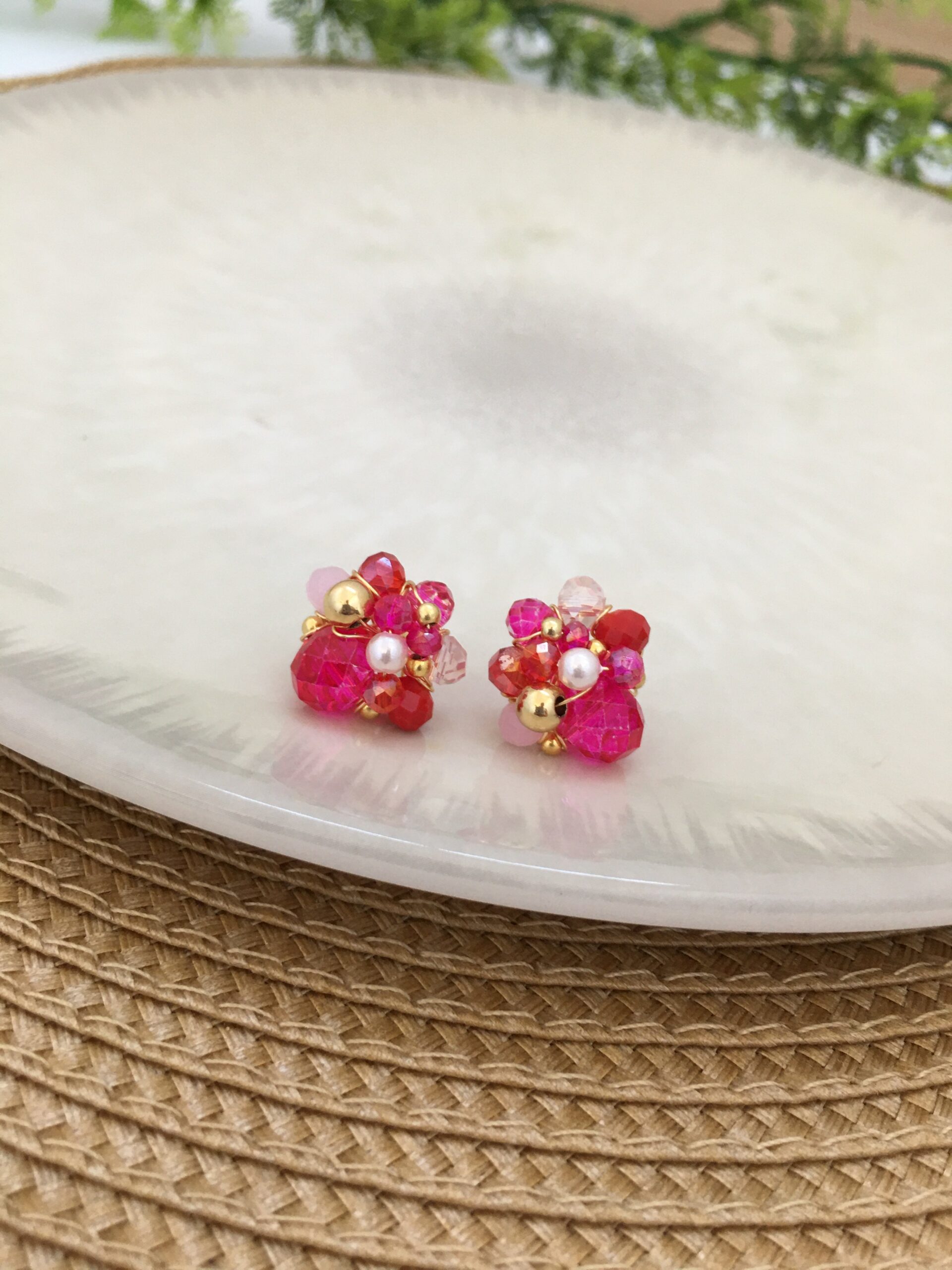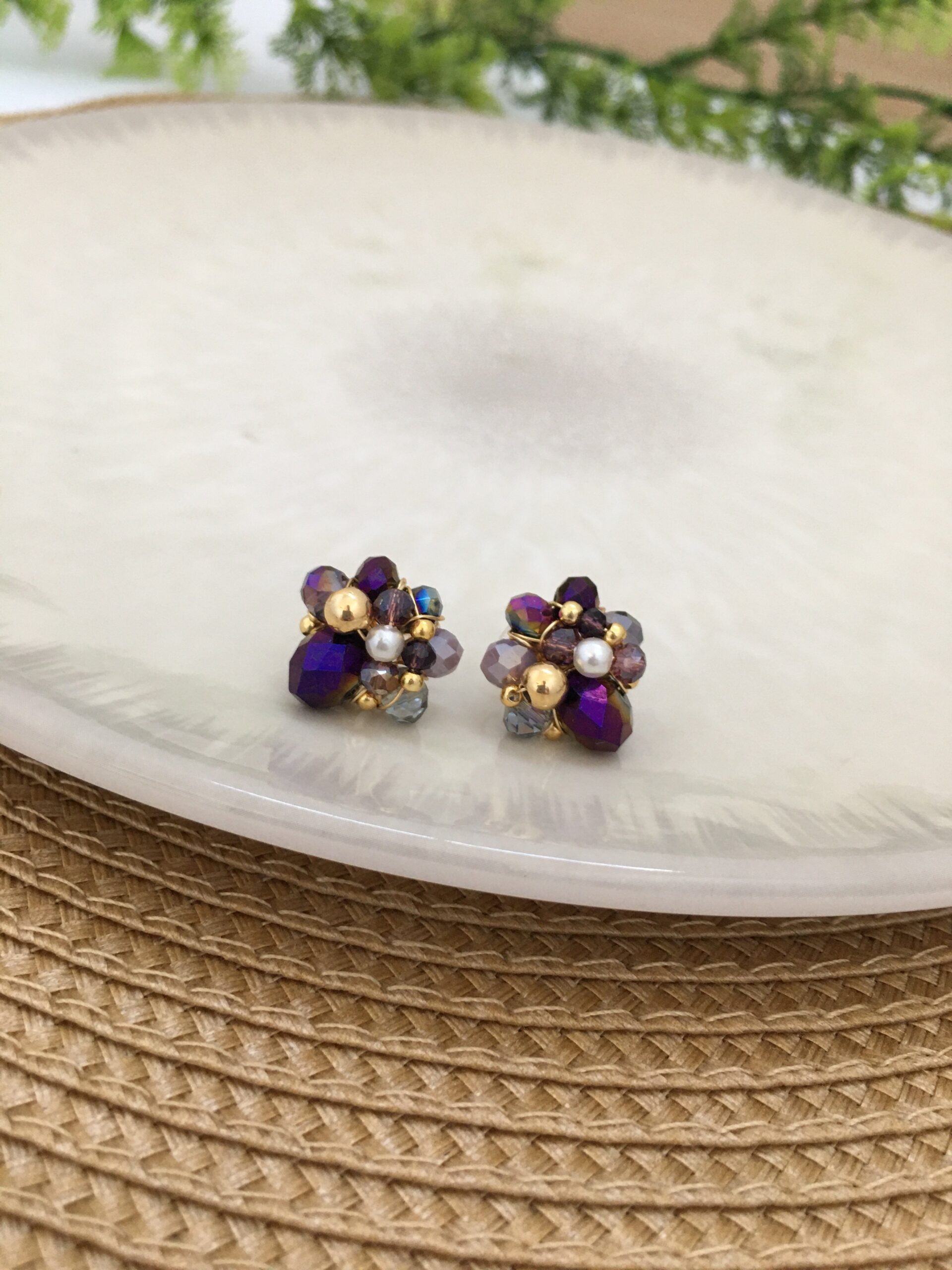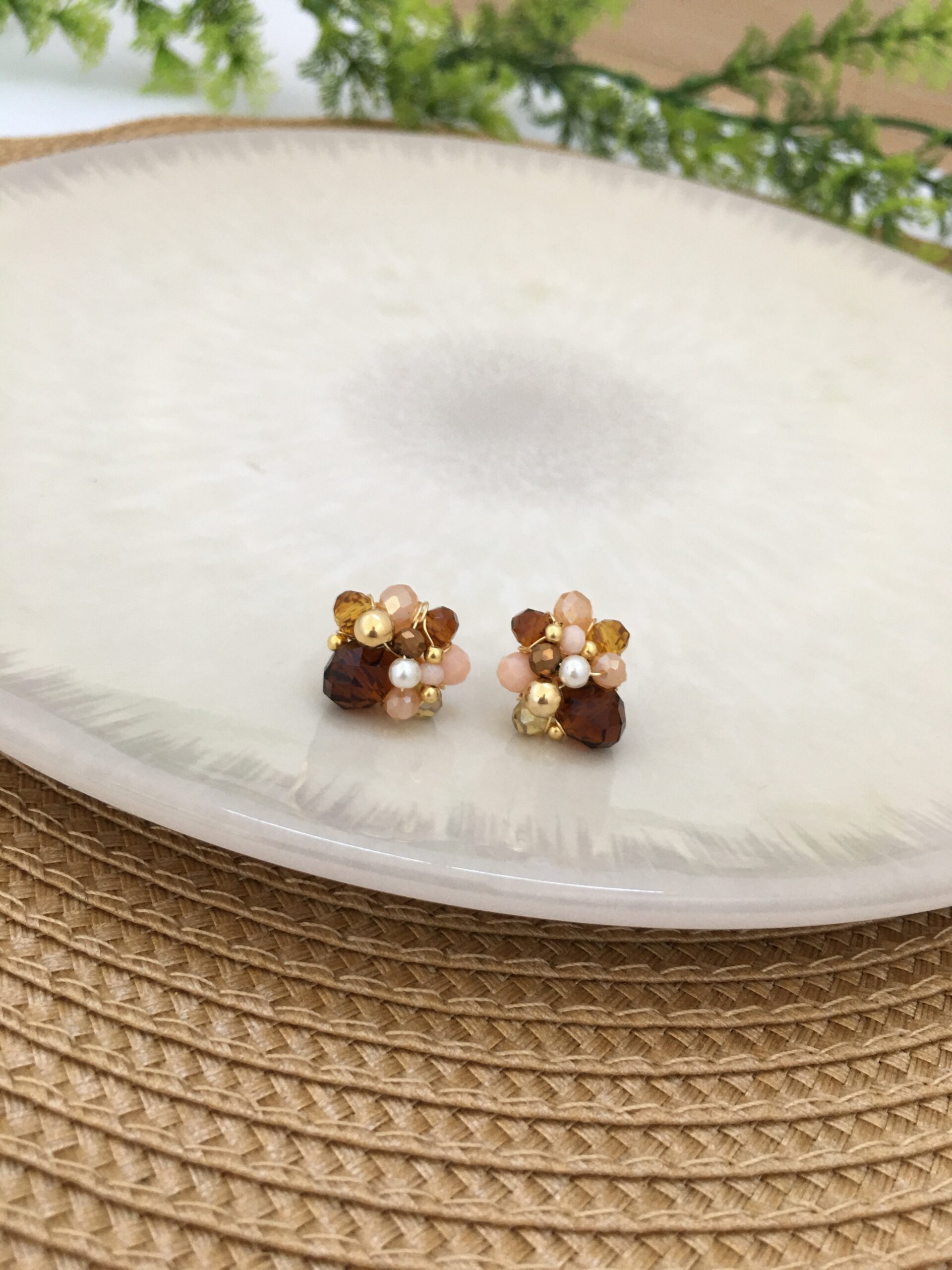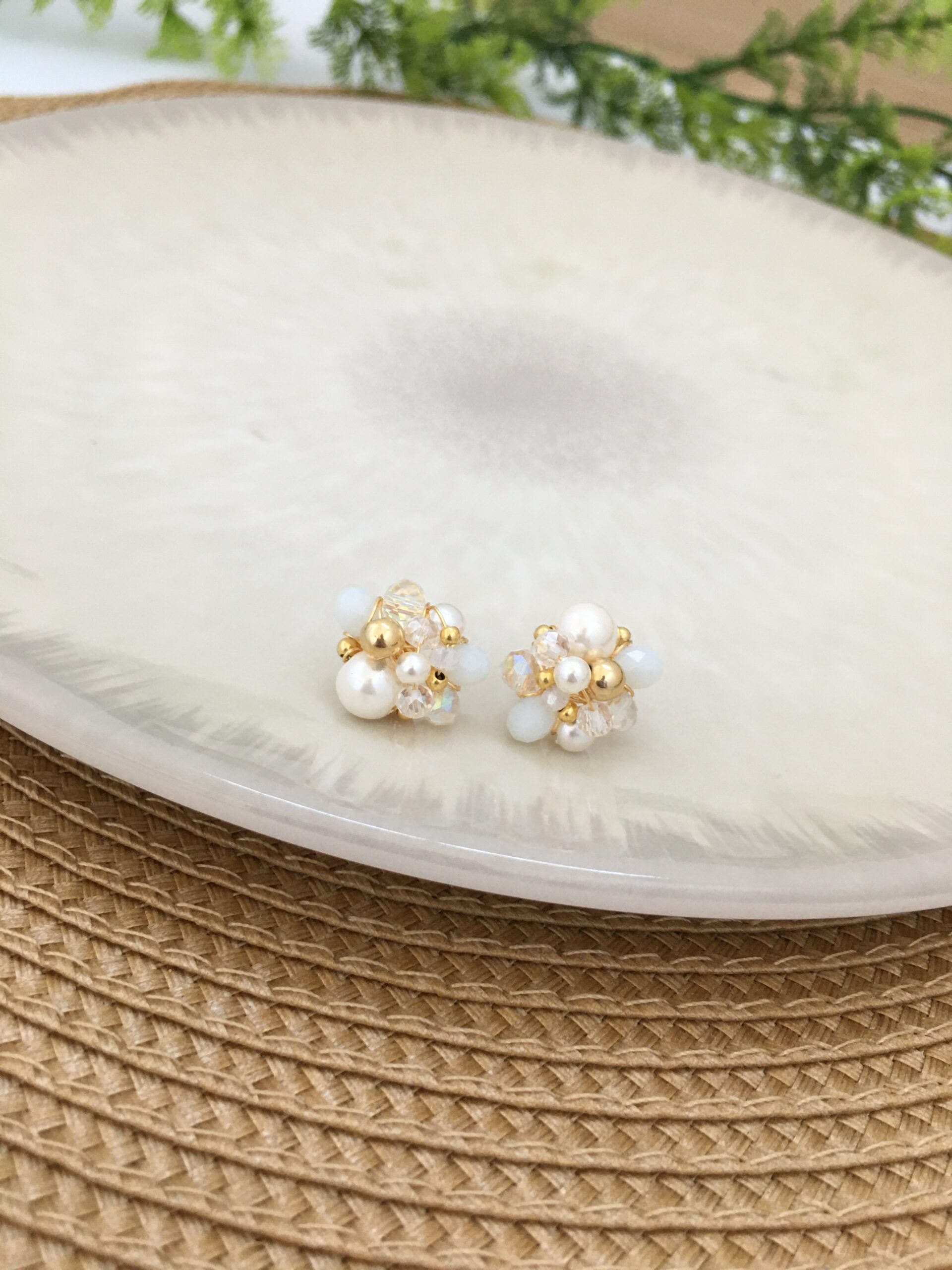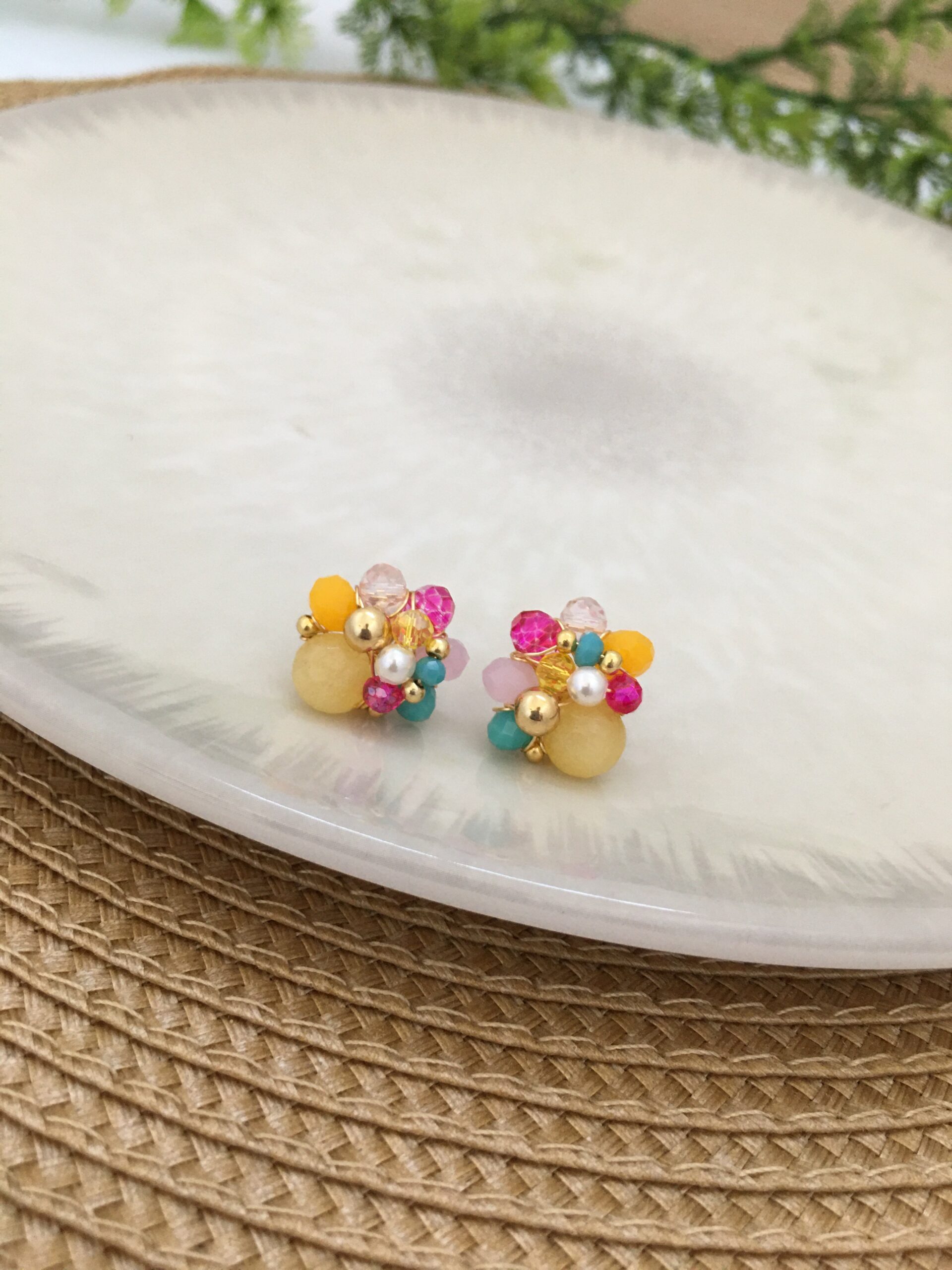 Materiales: Alambre de joyería gold hipoalergénico, cristal murano, piedras ágata, perlas sintéticas, balines en rodio.