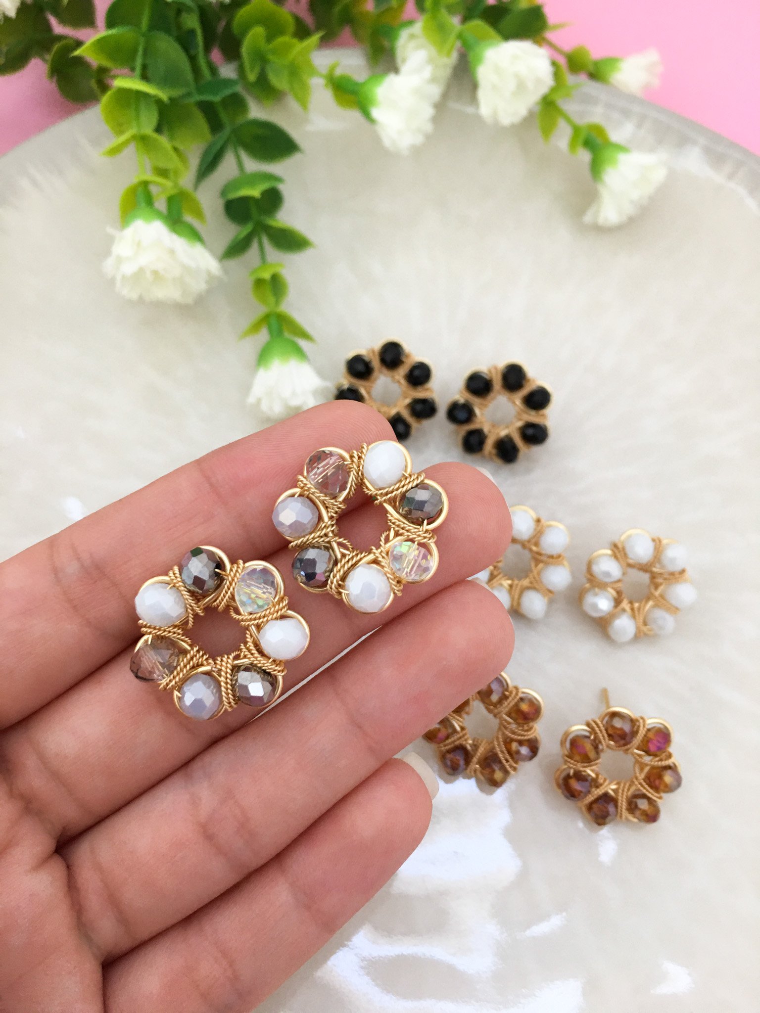 Materiales: Alambre de joyería gold hipoalergénico, cristal murano.